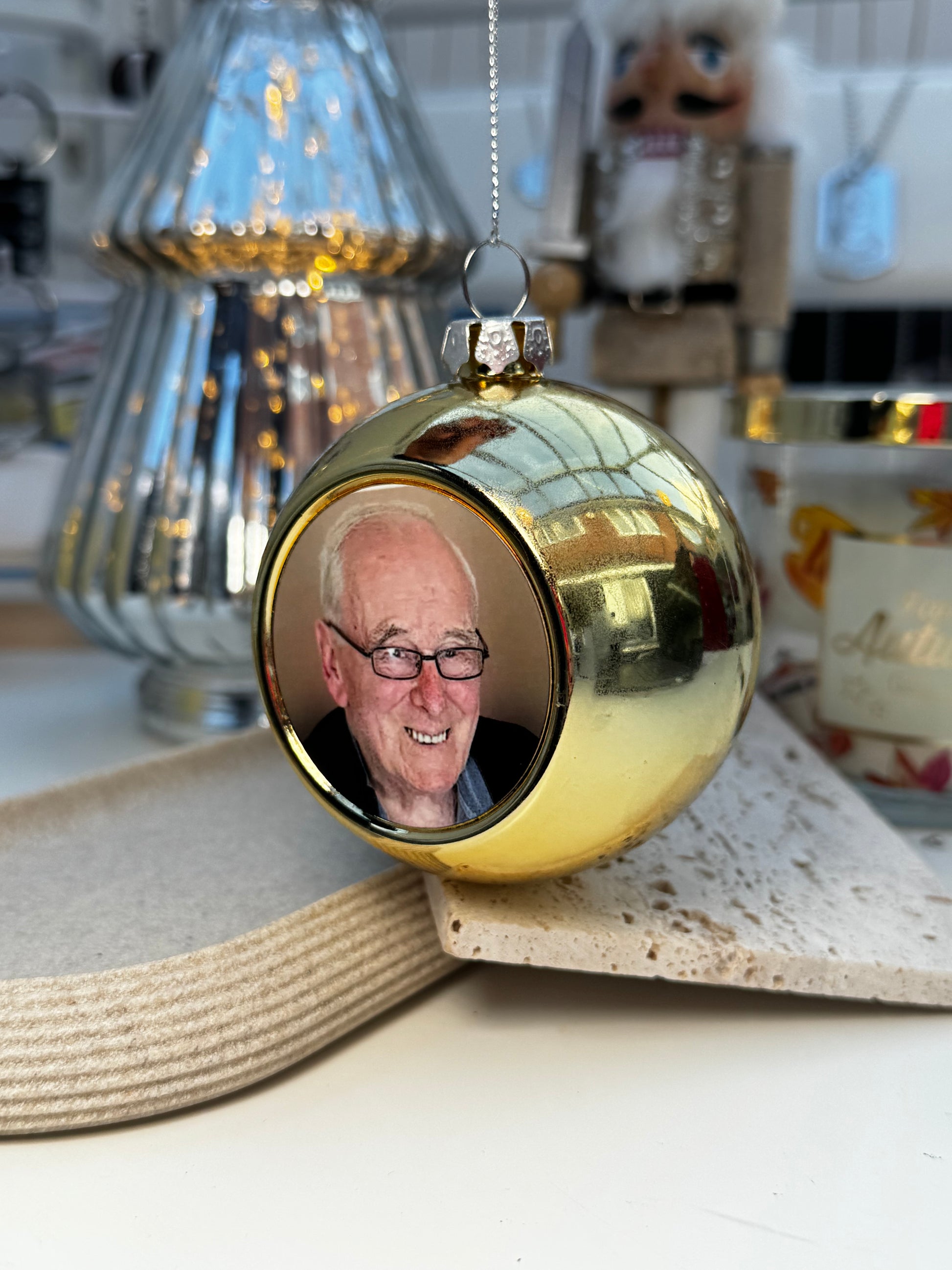 Introducing our latest addition to the 2025 collection: an elegant gold bauble that showcases your cherished memories. This 8cm x 9cm keepsake features a custom photo printed directly onto the front, creating a personalised decoration that transforms your favourite moment into a treasured ornament. Perfect for adding sentimental value to your festive display.