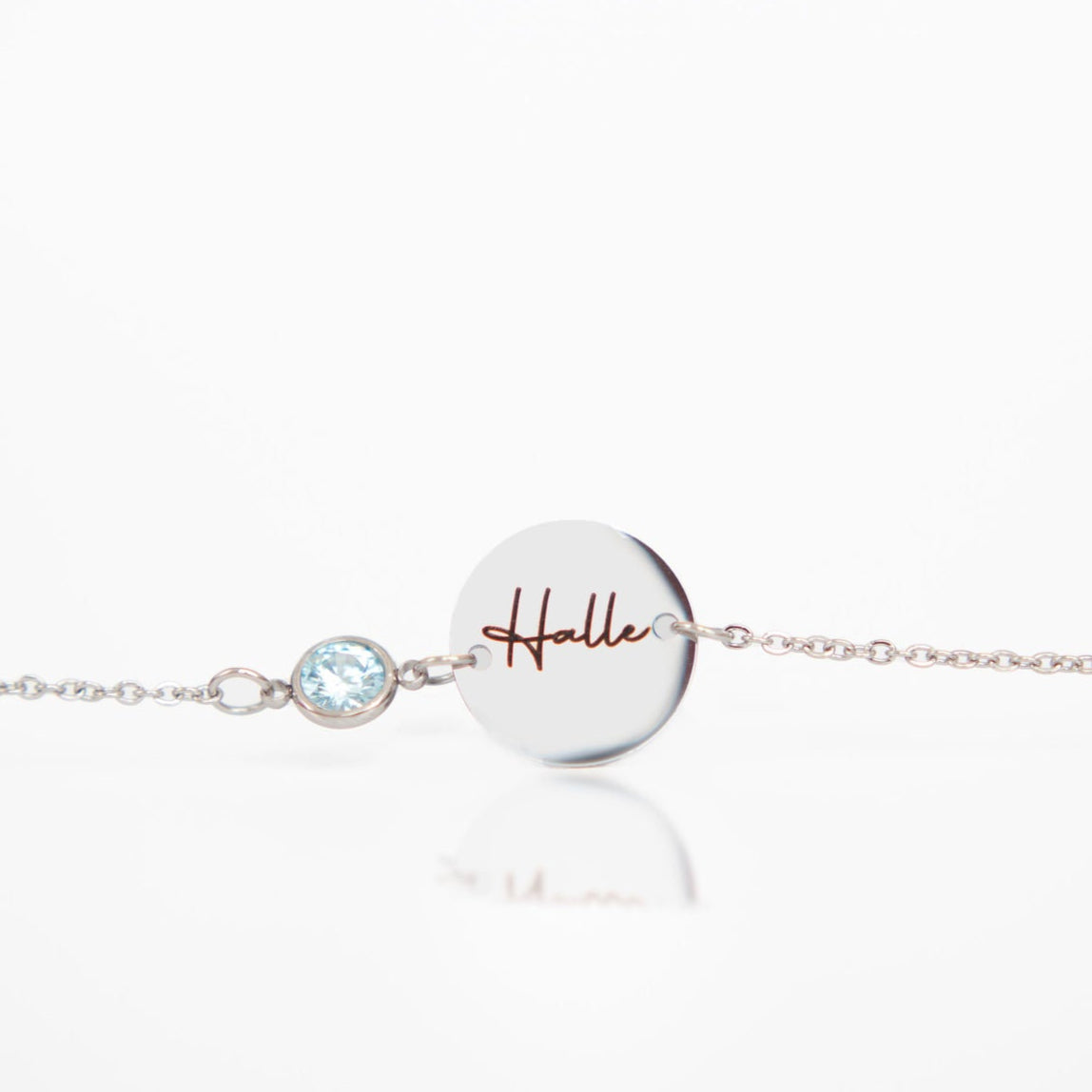 Customise your own birthstone bracelet with a small personalization, such as an initial, age, or date. Crafted from stainless steel, our bracelets are water-resistant and durable.