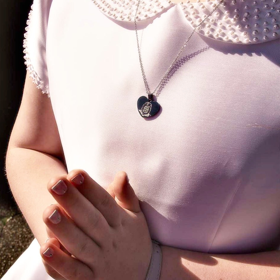 This is a smaller version of our popular photo engraved heart necklace, available with either a photo and text on the back or double-sided photo engraving. The holographic finish enhances the clarity of the engraving under light. The engraving quality depends on the photo provided—clear, well-lit images produce the best results. Handwriting is treated as an image rather than text, so please consider this when selecting your engraving option. Pendant dimensions: 18mm x 20mm x 1.5mm.