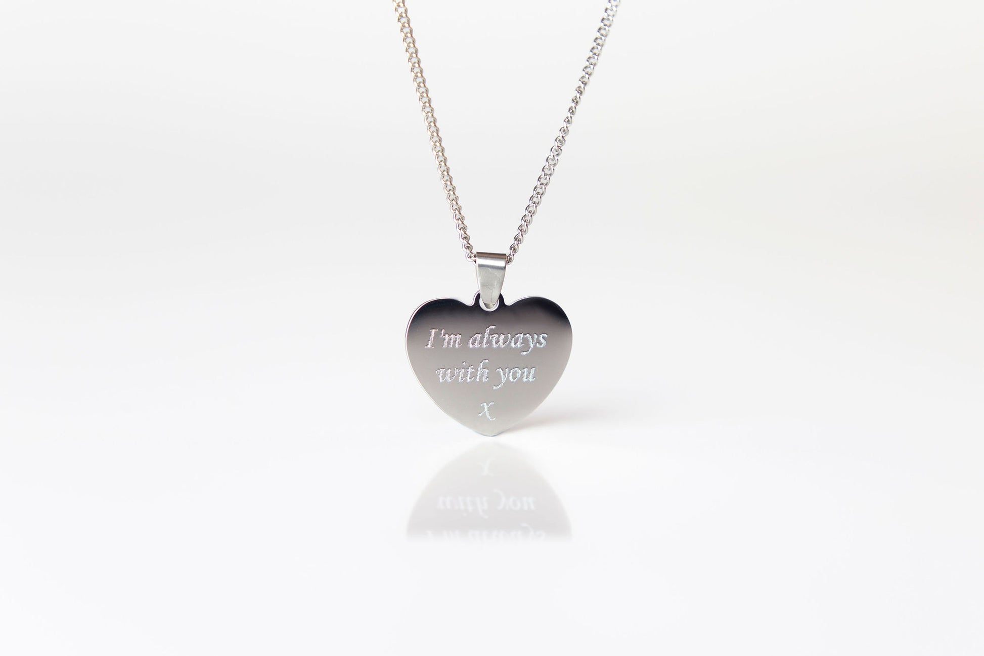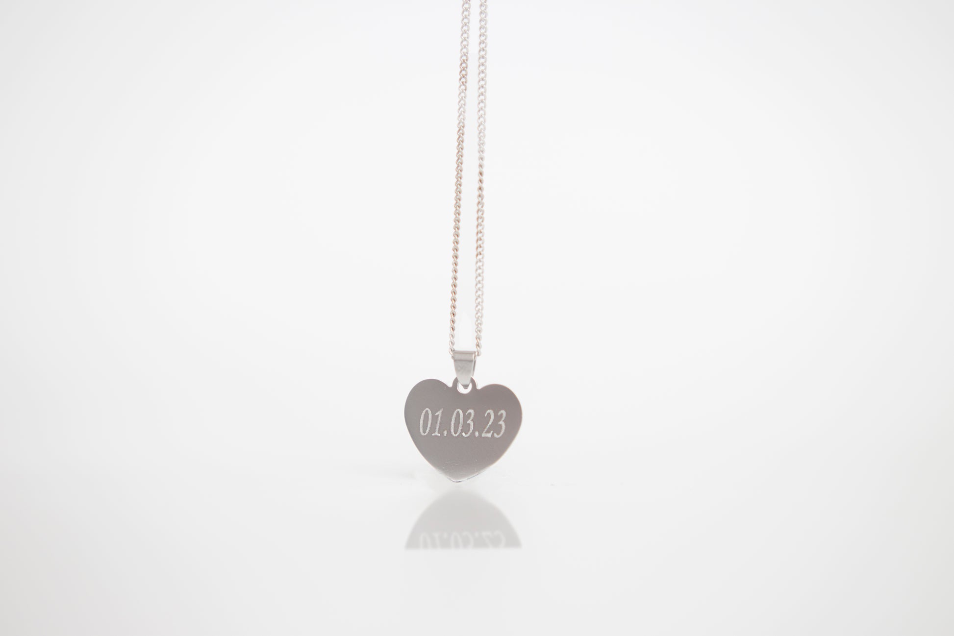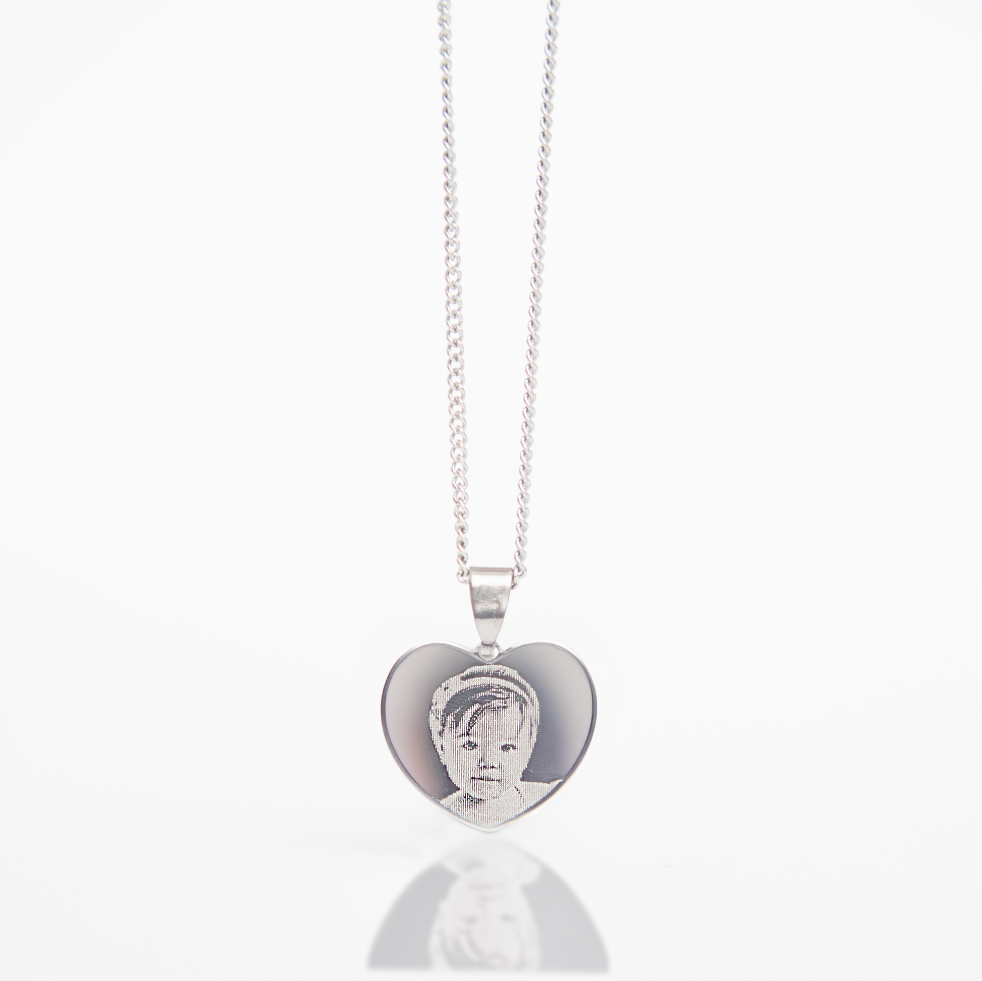 Small silver photo engraved heart necklace