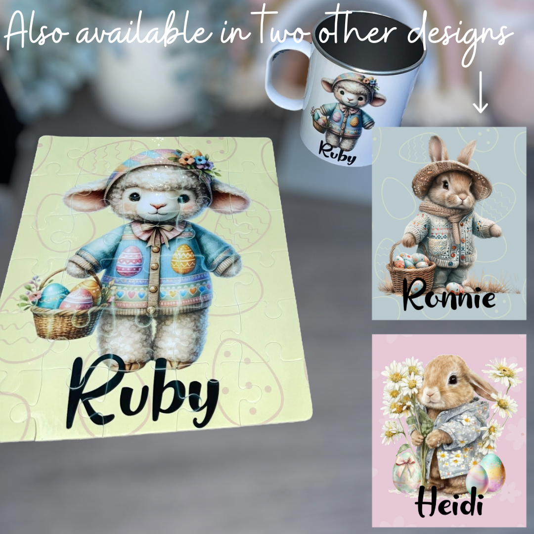 - A 30 piece cardboard puzzle printed with the design of your choice & child's name